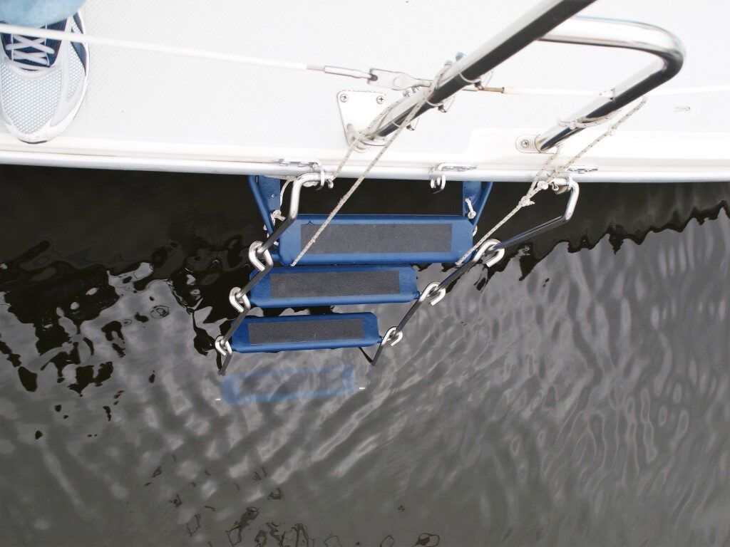 Parmi les versions d'échelles de secours disponibles sur le marché, la plus populaire, la plus pratique et la plus sûre est l'échelle de secours à ouverture rapide. Il doit porter l'approbation ISO 15085 et peut être installé à l'arrière ou sur les côtés du bateau. Il est généralement ouvert rapidement à l'aide d'une poignée spéciale ou d'une lisière. Quel que soit le modèle choisi, il est conseillé de ne pas lésiner sur la longueur de cette échelle pour permettre aux pieds de se reposer même sous l'eau. Enfin, n'oubliez pas que la remontée à bord à l'aide de ce dispositif est sans aucun doute rapide et sûre, mais qu'elle exige tout de même une certaine agilité et une certaine familiarité pour ne pas "foirer". Il est donc préférable d'opter pour un modèle plus pratique et plus avancé.