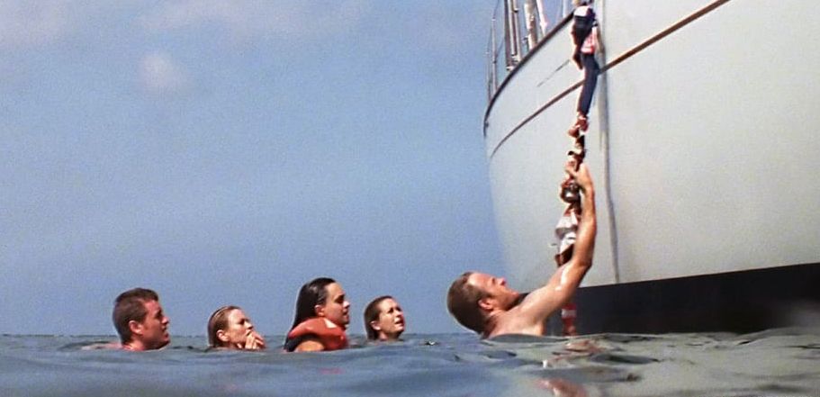 Dans le film Open Water 2 : Adrift, un magnifique thriller nautique signé en 2006 par Hans Horn, l'aventure dramatique est racontée par un groupe d'amis qui, pour fêter l'anniversaire de l'un d'entre eux, décident de passer un week-end à la voile. Sans aucune expérience de la voile, une fois en pleine mer, le groupe arrête le bateau pour se baigner dans l'eau merveilleuse de l'océan. Mais après avoir tous plongé, quand il est temps de remonter à bord, ils font la découverte choquante qu'ils n'ont pas descendu l'échelle du bateau, sur laquelle se trouve la petite fille d'une des filles. Le bateau est trop haut et glissant pour en sortir et pour les six naufragés, c'est le début d'une tragédie inévitable : certains se noient, d'autres se blessent en se cognant la tête contre l'hélice du bateau, d'autres encore se blessent avec un couteau, et certains, se sentant coupables de la tragédie, décident même de se suicider en se noyant.