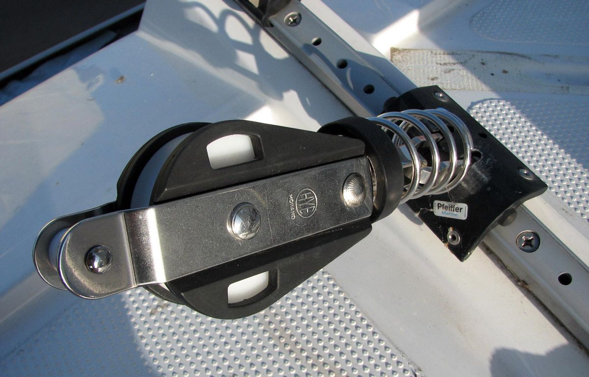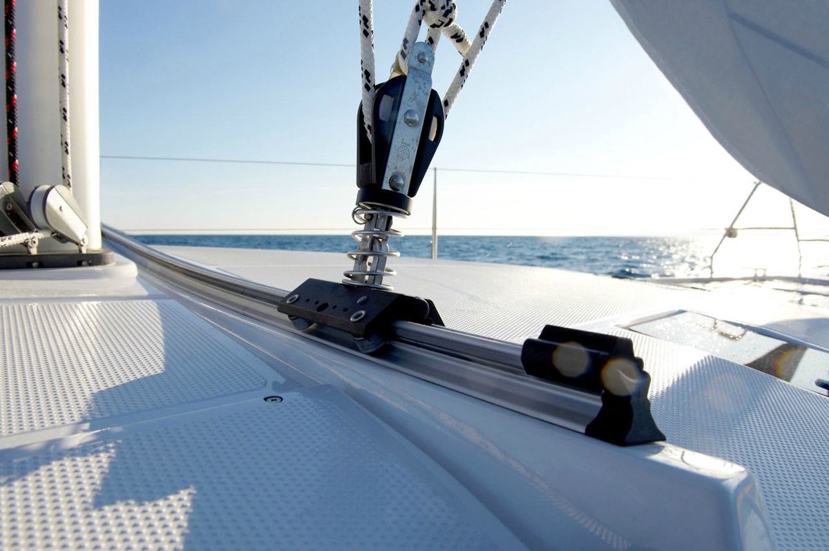 Une autre limitation est la position transversale du rail sur le pont qui ne permet pas de régler le point d'écoute vers l'avant. Par conséquent, lorsque l'on navigue du tableau arrière vers la poupe, si l'on relâche l'écoute, la chute de la voile s'ouvrira inévitablement trop tandis que la base restera fermée, ce qui créera une asymétrie : un problème auquel on peut remédier en partie en utilisant des rails courbes et une haleine de barbier pour abaisser le point d'écoute, mais dans ce dernier cas, on risque de compliquer un système qui a justement son attrait dans sa simplicité.