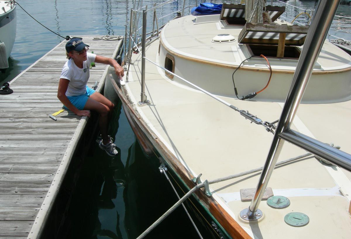 En ce qui concerne l'entretien courant, il est essentiel de maintenir les dragues toujours tendues mais pas serrées au fer pour donner de l'unité au chandelier et ainsi répartir la contrainte sur plusieurs éléments. Méfiez-vous des tendeurs équipés d'un écrou de réglage en plastique : au soleil, l'écrou se cristallise et lorsqu'il est serré avec une pince, il se fissure et se casse définitivement, peut-être juste au moment où vous saisissez la drague pour la soutenir. Il est bon d'éliminer périodiquement le sel de ces composants métalliques avec de l'eau douce en abondance. Ensuite, frottez-les avec de la peau de daim ou une éponge douce et de la pâte à polir. Pendant le nettoyage, inspectez : les fissures, l'oxydation, les bagues cassées, les fixations desserrées, nécessitent une action immédiate. Enfin, une main est passée le long de la draperie à la recherche de brins cassés, menace cachée pour la sécurité de l'équipage et des voiles et à neutraliser par des tours de cordage serrés en attendant de remplacer le câble.