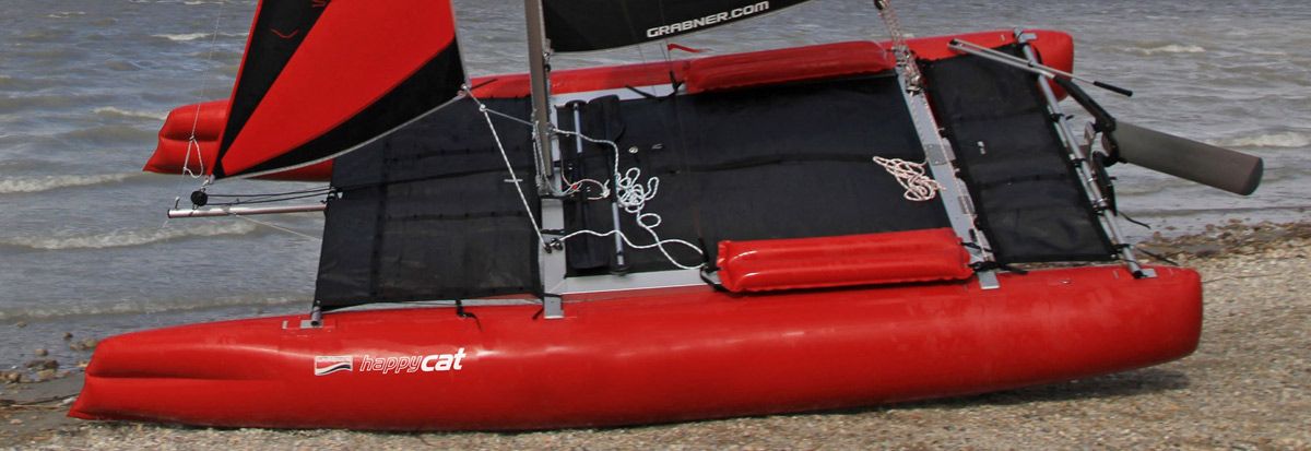 Simplicité de montage, bonne manœuvrabilité en navigation et polyvalence sont les caractéristiques du Happy Cat Light (4,35 m), un multicoque pneumatique pour deux équipiers produit par la société allemande Grabner. Sa structure de base se compose de deux coques en caoutchouc naturel et d'un trampoline en tissu fixé au moyen de barres plates en aluminium qui s'insèrent dans des poches spéciales collées sur les coques. Deux dérives sont prévues, tandis qu'à l'arrière se trouve une plaque (optionnelle) pour visser un support pour le hors-bord de 4-6 cv. Le gréement a une surface de 10 mètres carrés divisée en une grand-voile à lattes (avec hale-bas) et un foc monté sur un bout-dehors et équipé d'un enrouleur. Le mât, qui peut être divisé en trois parties, est réglé dans la boîte spéciale à la base du trampoline et est équipé de haubans et d'un étai.