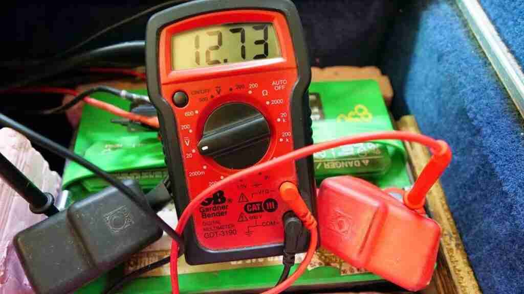 Le contrôleur de batterie doit également mesurer la tension directement sur la batterie, de sorte que les deux instruments doivent afficher approximativement les mêmes lectures. Si les lectures entre le voltmètre et le multimètre s'écartent d'un dixième de volt ou plus, le problème est probablement dû à la corrosion, à un mauvais câblage ou au fait que le voltmètre ne mesure pas directement aux bornes de la batterie.